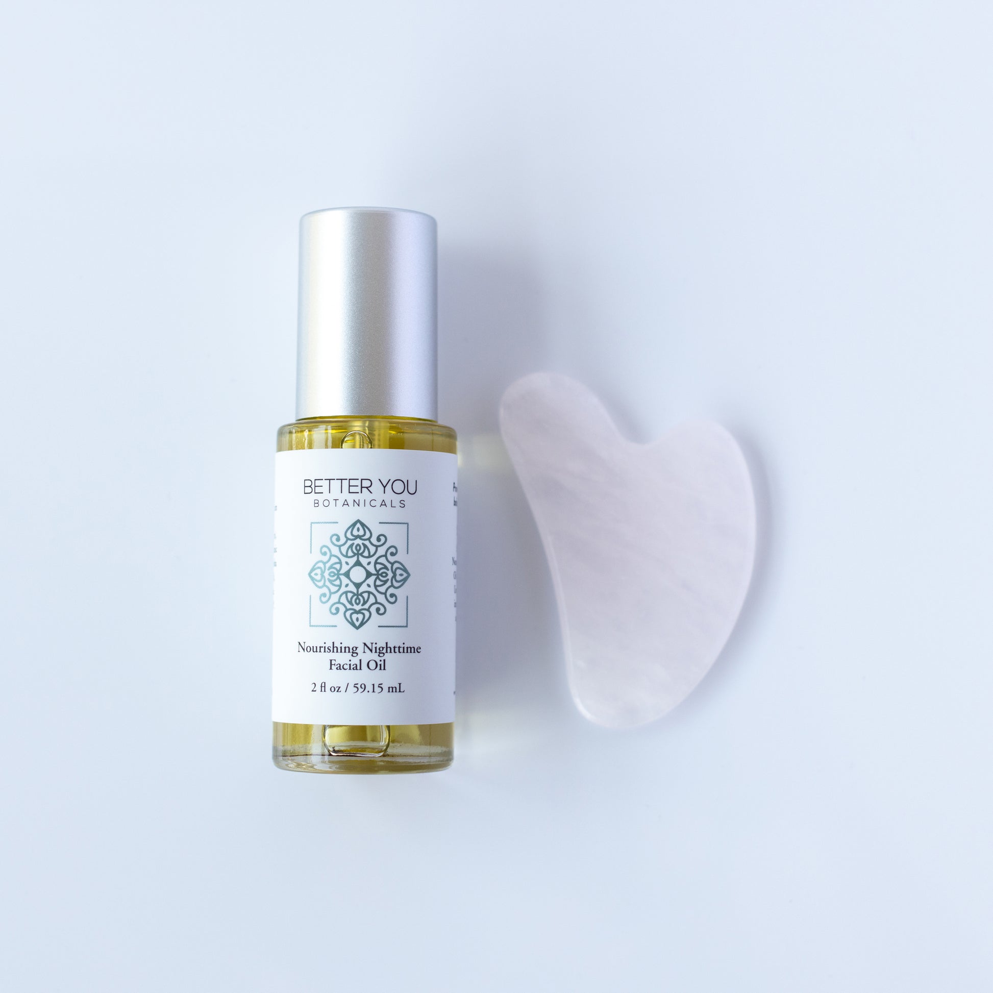 Rose Quartz Gua Sha Tool & Full-Size Nourishing Nighttime Facial Oil Bundle